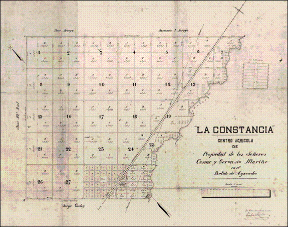 ¿Qué sucedió en el centro agrícola La Constancia? En marzo de 1894, siguiendo las medidas dispuestas por el gobierno provincial, se ordenó a los hermanos Mariño vender en remate público los lotes que aún no se habían otorgado, al considerar que “solo han sido colocados treinta y siete chacras, de las noventa en que está dividido el mismo”;[36] paralelamente, se los intimaba a escriturar en donación al Estado las reservas para usos públicos. ¿Por qué no se había avanzado en la venta de las chacras?, ¿acaso no hubo interés de los concesionarios por venderlas?