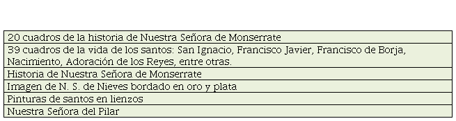 En las hojas de registro, las pinturas figuran a menudo varias juntas como: “imágenes enrolladas”, “lienzos pintados”, “pinturas” o “pinturas de iglesia”. Pocas veces se especifica la iconografía, como se observa en la Tabla 4: