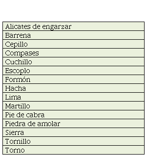 De los elementos de transferencia cultural material mencionados hasta ahora, llama especialmente la atención que a menudo se trataba de objetos de arte o de lujo muy codiciados en la época, entre los que también se cuentan los textiles de alta calidad. De naturaleza completamente diferente son las herramientas que se importaron de Europa durante todo el período, ya que en apariencia eran de mejor calidad que las producidas localmente. En las hojas de registro figuran cajas de herramientas para la agricultura y la ganadería, como palas, azadas, guadañas, cuchillos y tijeras de trasquilar, mezcladas con las de carpinteros, escultores o canteros, como hachas, sierras, taladros, escofinas, limas, cinceles diversos y hasta tornos. Asimismo, aparecen yunques y martillos para herreros e instrumentos para la producción textil (Gramatke, 2019., pp. 222-223). Estos instrumentos se listan en la Tabla 7: