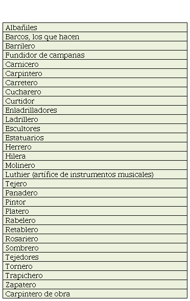 Parece que los artesanos solo trabajaban para el autoabastecimiento de las reducciones (ayudándose mutuamente entre sí), ya que aún se carece de documentos para probar el negocio con las manufacturas, excepto aquel realizado con telas de algodón (Sepp, 2012, folio 140). Además de generar autosuficiencia, los talleres cumplían la función de ir sustituyendo el modo de vida indígena, que los jesuitas consideraban inactivo y holgazán, por el modo de vida laboral europeo. En resumen, las misiones estaban mejor organizadas y equipadas que los centros urbanos de la provincia, donde apenas había talleres y artesanos (Hernández, 1913, p. 222). Incluso después de la expulsión de la orden, era fácil para los guaraníes formados encontrar trabajo como artesanos (Maeder, 1991, p. 41). En los inventarios de las reducciones se mencionan las profesiones listadas en la Tabla 8: