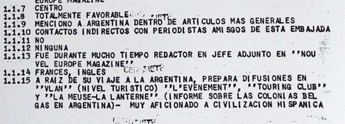 Las carpetas “halladas” de la DGPyD evidencian que, a pesar de los cambios de conducción, existieron ciertas regularidades entre los períodos. En particular, en el programa de invitación al periodismo extranjero y en lo referente al proceso de selección de participantes. Después de la “Directiva Nro. 1 de Difusión al Exterior” que había especificado que las embajadas debían remitir a la DGPyD sus contactos,[16] esta Dirección detalló cómo debía ser suministrada la información en sucesivas circulares telegráficas (CITEL). De acuerdo a estas directrices, los embajadores proporcionaron nombres de individuos para visitar Argentina que eran adecuados para cumplir con la tarea de transmitir lo experimentado e incluir una imagen positiva del gobierno receptor.[17] También hubo casos en los cuales los embajadores informaron sobre visitas ya programadas de periodistas, como fueron las de Jacques Schoonjans y de Fernando Vizcaíno Casas, que luego fueron incorporadas al programa.[18] En estos intercambios se evidencia que, así como el cuerpo diplomático apoyó el despliegue del accionar represivo extraterritorial (Fernández Barrio, 2017), también fue indispensable como primer filtro en la selección de candidatos para mejorar la imagen de Argentina. En este desempeño “productivo” de la dictadura, la última decisión respecto a quién elegir y a quién descartar era tomada por la autoridad máxima: la DGPyD en Buenos Aires.