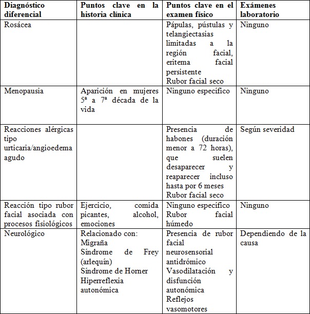 Las diferentes opciones diagnósticas que existen sustentan la importancia de un adecuado abordaje del rubor facial en atención primaria que permita el manejo oportuno de las enfermedades que lo producen e influir positivamente en los desenlaces de cada una y en la calidad de vida de los pacientes.