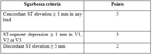 Sgarbossa EB, Pinski SL, Barbagelata A, Underwood DA, Gates KB, Topol EJ, et al. Electrocardiographic diagnosis of evolving acute myocardial infarction in the presence of left bundle-branch block. N Engl J Med. 1996 Feb 22;334(8):481-7.