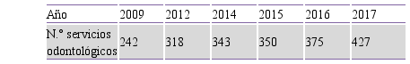 El aumento paulatino en el número de servicios odontológicos en los establecimientos del MSPBS (Tabla 3).