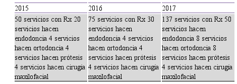 Se estancó el desarrollo de los programas lo que se vio reflejado en la baja demanda de servicios por parte de la población que, además, tenía reducidas expectativas de encontrar solución a sus necesidades en su proceso de búsqueda de la atención. La prevalencia de las extracciones y tratamientos de urgencias era mucho mayor que los tratamientos conservadores y las rehabilitaciones (2,16).