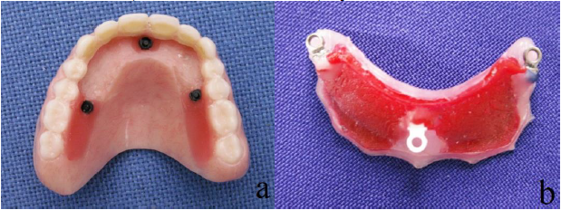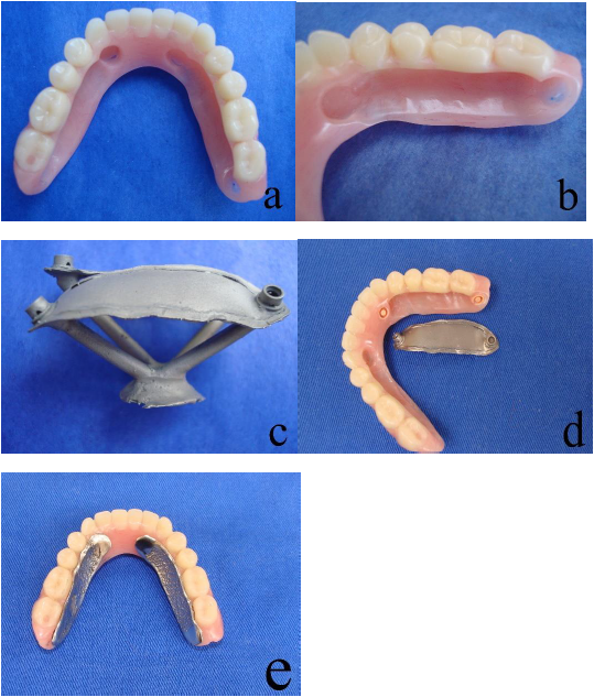 En los dos casos, las prótesis se terminan en su totalidad de acuerdo a las técnicas clásicas del acrilado dental y posteriormente se procede a retirar con fresas el acrílico necesario para realizar los socavados donde van lo depósitos salivales. Posteriormente se elaboran las tapas con matrices previamente diseñadas y se llevan a procedimientos de colado y finalmente se colocan en posición.