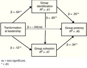 In the present study, we explored the influence of transformational leadership on group potency, a variable that is closely related to group performance. We identified two ways through which leadership may have an impact on group outcomes: group identification and group cohesion.