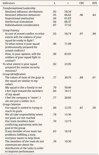 The present study highlights the importance of factors based on behaviors of military leaders and on characteristics of units at tactic levels that are the basis of operational and strategic levels. Our study suggests the need to promote selection, training, and promotion at the squad level, enhancing group identification and cohesion between members, which are the cornerstone of small units, particularly during operations. As leaders of small units that belong to sections and companies, squad leader require proper training and skills to promote a transformational leadership style. The importance of achieving group potency in military units lies in the collective motivation that this construct represents. Group potency is one of the pillars of the human factors that, together with material factors, enable the military capabilities that armies require to fulfill their missions.