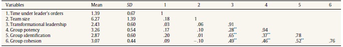 Keywords: Transformational leadership, Group cohesion, Group identification, Group potency, Squad.