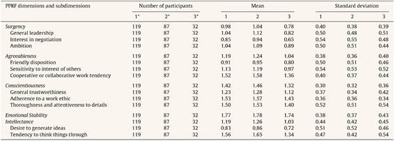 A subdimension with a high level of development, which is not included within the first three PPRF dimensions rated as important for efficient performance in the analyzed job, is cooperative or collaborative work tendency, which had a ratings’ mean of 1.52, much higher than the mean of the dimension in which is included, agreeableness, 1.188. This result can be explained by the fact that the operational NCO employed in mobile structures job involves teamwork.