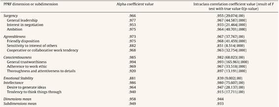 Most values of inter-rater agreement indicators of PPRF subdimensions indicate an excellent degree of agreement, excluding the values of agreement that indicate a good level of sensitivity to interests of others subdimension, for both types of inter-rater agreement indicators, and of thoroughness and attentiveness to details subdimension in the case of the intraclass correlation coefficient.