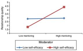 Hypothesis 1b: Mentee's self-efficacy moderates the relationship between mentoring and the quality of relationship.