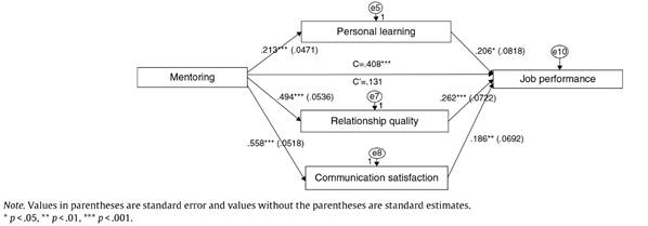 In this research there are three mediators, namely, personal learning, relationship quality, and communication satisfaction, between mentoring and job performance relationship.