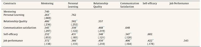 Keywords: Mentoring, Self-efficacy, Personal learning, Relationship quality, Communication satisfaction, Job performance.