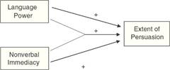 According to our model (see Figure 1), language power (Ng & Bradac, 1993) and nonverbal immediacy (Mehrabian, 1969) not only exert independent effects on speaker persuasiveness, but also have a synergistic effect on the extent of persuasion. Let us now analyze the other independent variable in our model, nonverbal immediacy, and review research on its extent of association with speaker persuasiveness.