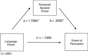 The discovery of a main effect for language power provided the impetus for determining whether perceived speaker power mediated the relationship between language power and the extent of persuasion. To make this determination, three different statistical approaches were utilized: (a) Baron and Kenny's (1986) approach, (b) the Sobel test (Sobel, 1982), and (c) the bootstrapped confidence interval (Kenny, 2016; Preacher & Hayes, 2004). The results of all three approaches converged in support of our position that perceived speaker power mediates the effect of language power on the extent of persuasion.