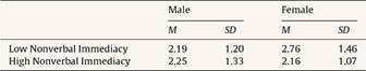 Another classroom variable that researchers have explored in relation to teacher nonverbal immediacy is student judgment of instructional quality. For example, Moore, Masterson, Christophel, and Shea (1996) studied the relationship between students’ perceptions of teacher nonverbal immediacy and students’ evaluation of instruction. In particular, they had students rate the teacher's nonverbal immediacy using the Immediacy Behavior Scale (Gorham, 1988) and rate the quality of instruction. Moore et al. (1996) found that student ratings of teacher nonverbal immediacy were positively correlated with student ratings of instructional quality.