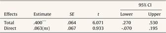 The unmediated result (total effect) obtained through PROCESS for SPSS is also significant, β = .4002, SE = .0659, t = 6.0706, p < .001, as shown in Table 3. This result also supports the fact that the three-path multiple mediation analysis is plausible in this study.