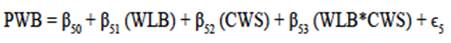 Work-life balance reflects person-environment (PE) fit with respect to work and family domains (Edwards & Billsberry, 2010). Person environment-fit with respect to coworkers is what Kristof-Brown, Zimmerman, and Johnson (2005) call person-group fit. Misfit in one domain may affect the fit in other domain (Bhagat, McQuaid, Lindholm, & Segovis, 1985), and this is where it can be stated that an employee’s fit with both domains of PE fit will enhance its effect on the target variable, and any misfit will reduce the effect of other. A situation of fit (i.e., work-life balance) creates wellbeing, while a situation of misfit (i.e., dissatisfaction with coworkers) predicts stress (Edwards & Rothbard, 1999). So, employees with greater work-life balance are less likely to achieve a greater level of psychological wellbeing if they are not satisfied with their work group.