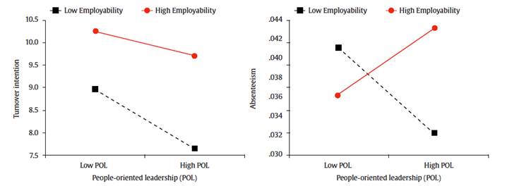 Hypothesis 3. Call-center supervisor’s people-oriented leadership is associated with diminished subordinate’s turnover intention and uncertified absenteeism more strongly among low-employability than high-employability workers.