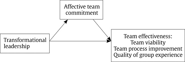 H4: Affective team commitment will mediate the relationship between transformational leadership and team effectiveness, namely, between transformational leadership and team viability (H4a), team process improvement (H4b), and quality of group experience (H4c).