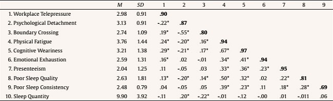 Keywords: Workplace telepressure, Psychological detachment, Boundary crossing, Burnout, Presenteeism, Sleep.