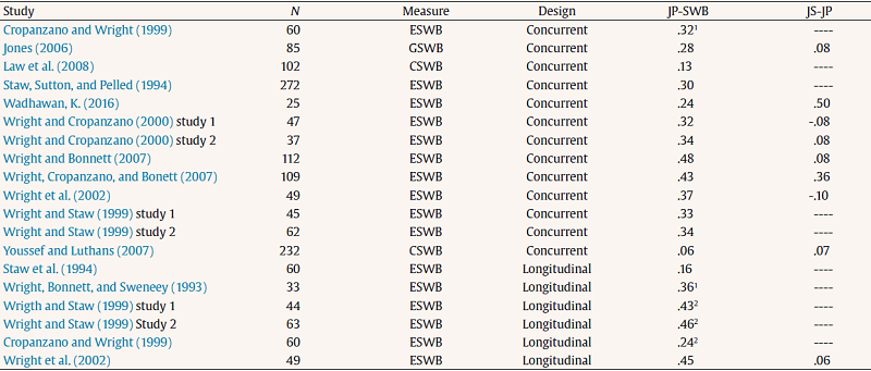 Wright, T. A., Cropanzano, R., & Bonnett, D. G. (2007). The moderating role of employee positive well being on the relation between job satisfaction and job performance. Journal of Occupational Health Psychology, 12, 93-104. https://doi.org/10.1037/1076-8998.12.2.93