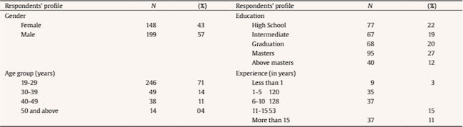 One may note from Table 1 that respondents’ age reflects a relatively young sample. There are two major reasons for this young sample. First, respondents were lower and middle level employees, and typically employees at these levels are younger than their higher level counterparts. Second, Pakistan is a remarkably young country and has a relatively young labor force ( Pakistan Bureau of Statistics, 2015; Pakistan Economic Survey, 2017). So, a young sample is quite normal.