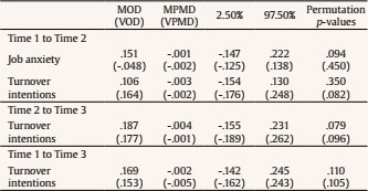 This study contributes to existing literature in three ways. First, this study is an addition to the scarce research examining the mediating role of job anxiety between POP and employee outcomes ( Cho & Yang, 2018). The results support not only the mediation hypothesis but also confirm the untested mediation of job anxiety between POP-turnover intentions relationship proposed by Kacmar et al. (1999) and Vigoda (2000). The findings of this study are consistent with previous research examining the psychological mechanisms (i.e., strain, burnout etc.) between POP and turnover intentions ( Chang et al., 2009; Huang et al., 2003), and respond their call for testing this link at different time points (i.e., in a time lagged model).