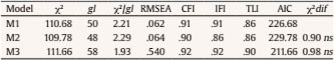 Additionally, in order to discover whether there are differences in the estimations of the parameters in the two samples, sedentary and non-sedentary, tests of equality of covariances and factorial weights were performed, establishing constraints in the parameters corresponding to the factorial weights ( Byrne, 2001). M3, completely constrained model, assuming the equality of the factorial weights of the three latent factors in both samples, obtains a fit that is not significantly different from the data used to compare the free model (M1, non-constrained model, expressed as ∆ 2 = 0.98, ns). In conclusion, the results of the multigroup confirmatory factorial analyses support the models invariance, regardless of the PE done by the employees. These results support Hypothesis 1.
