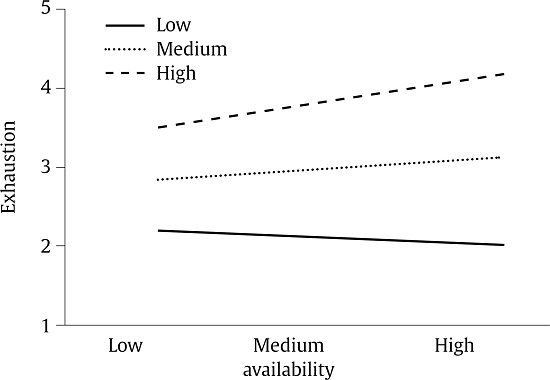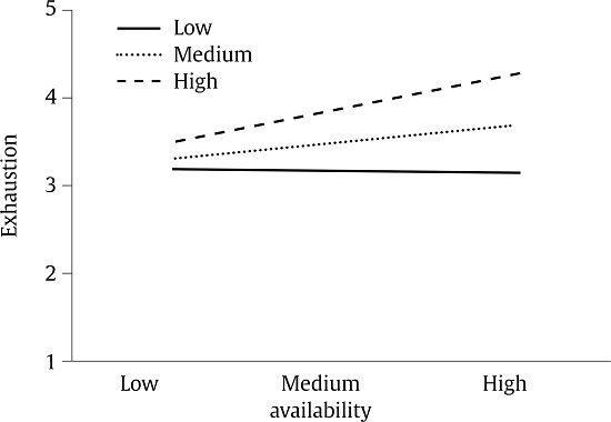 Although we did not find an association of WREA with exhaustion in the overall sample, we found significant moderator effects for neuroticism and segmentation preferences. Whereas individuals with higher scores in neuroticism or stronger segmentation preferences felt more exhausted when accepting work contact in leisure time, there was no relationship for people low in neuroticism or with low segmentation preferences. This finding could help explain why the effects of availability for work in leisure time on exhaustion previously found are inconsistent. Whereas most studies (e.g., Derks, van Mierlo et al., 2014) found a positive relation-ship, a few studies (e.g., Collins et al., 2015) found a negative one. The effect of WREA on exhaustion appears to be contingent on personal characteristics and attitudes and depending on the sample composition the effects found in a given sample can therefore vary.