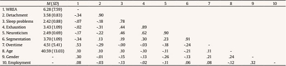 However, there are also limitations. The study design is correlational, hence no causal conclusions can be drawn, and predictor, criterion, and moderator variables were assessed in one session, so it cannot be ruled out that part of the relationships between variables is due to common method variance. While this is possible, we do not consider this explanation likely, since bivariate relationships between WREA on the one hand and sleep problems and emotional exhaustion on the other are very low. Furthermore, the association between WREA and detachment is close to the meta-analytic estimate for the relationship between work-related activities during leisure time and detachment ( Wensche & Lohmann-Haislah, 2017).