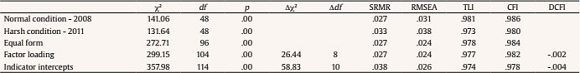 To assess the measurement equivalence of the questionnaire across labor conditions, a multi-group CFA was conducted. The test of measurement invariance included only the invariance of factor loadings and factor intercepts as we are mainly interested in comparing the regression coefficient. We inspect the overall model fit and changes in fit statistics; a change in CFI of lesser than .01 indicates invariance ( Cheung & Rensvold, 2002). Results demonstrated that invariance was achieved across labor conditions with both CFI and TLI > .95, RMESA = .026, SRMR = .038, and DCFI < -.01; the two groups responded to the questionnaire similarly across labor conditions.