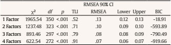 Reliability analyses (corrected item-total correlations and Cronbach’s alphas) and confirmatory factor analyses (CFA) were performed on subsample B, using Mplus 7 (Muthén & Muthén, 2012) for the CFA. To test the model goodness of fit, we used the same indices presented above for EFA, along with the comparative fit index (CFI), that can be interpreted as the TLI.