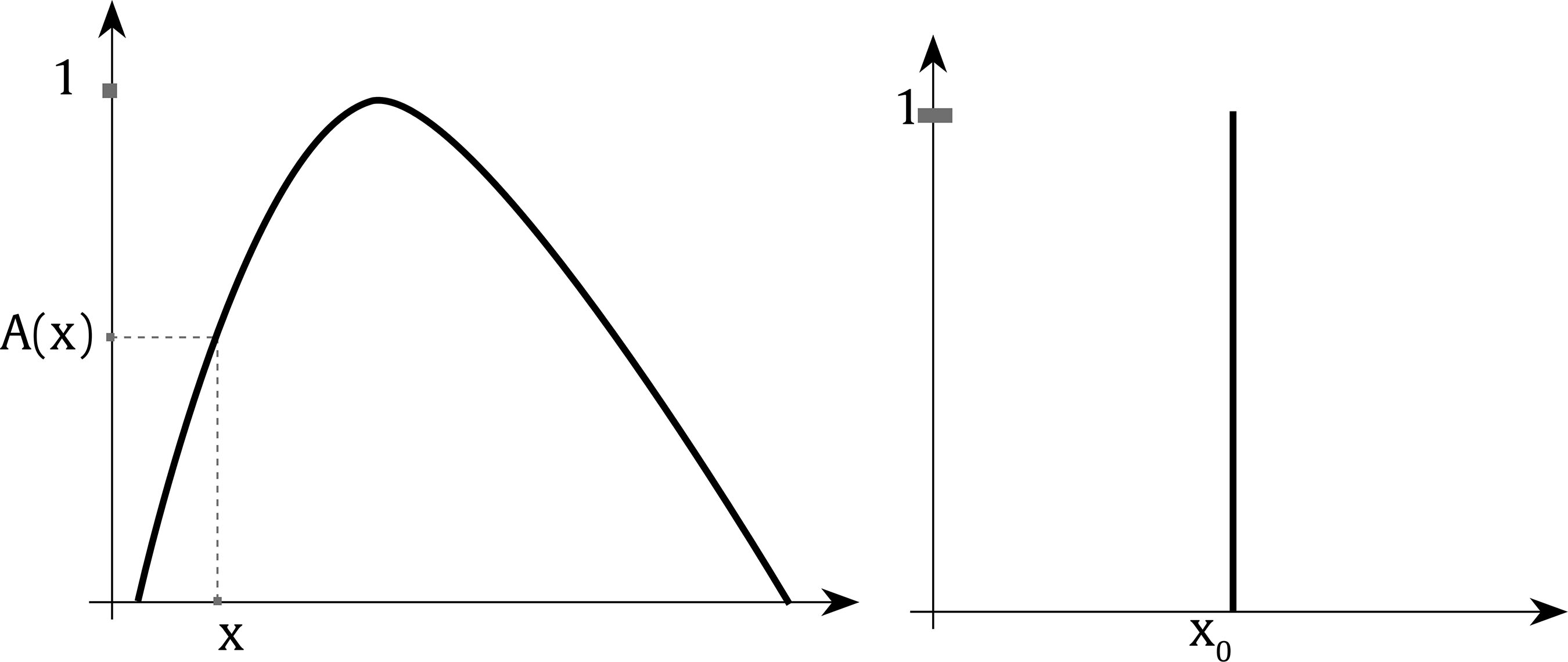 Fuzzy logic was developed by Zadeh (1965b) in order to operate with lack of accuracy, when this inaccuracy is neither a random nor stochastic variable, but a vaguely defined class. This means a class or classes that do not possess sharply defined boundaries. In contrast to conventional set theory, where an object is required to be either a member of a set or not a member of that set, fuzzy sets make it possible to treat fuzziness in a quantitative manner. According to Zadeh (1965a), a fuzzy set is a class of variables with a continuum grade of membership, and is defined by its membership function, which represents a grade of membership between zero and one. The nearer the value of the membership function to one, the higher the grade of membership in the fuzzy set (Kaufmann & Gupta, 1991). In Figure 1, we can see a graphical representation comparing the membership function of a fuzzy set and a real number.