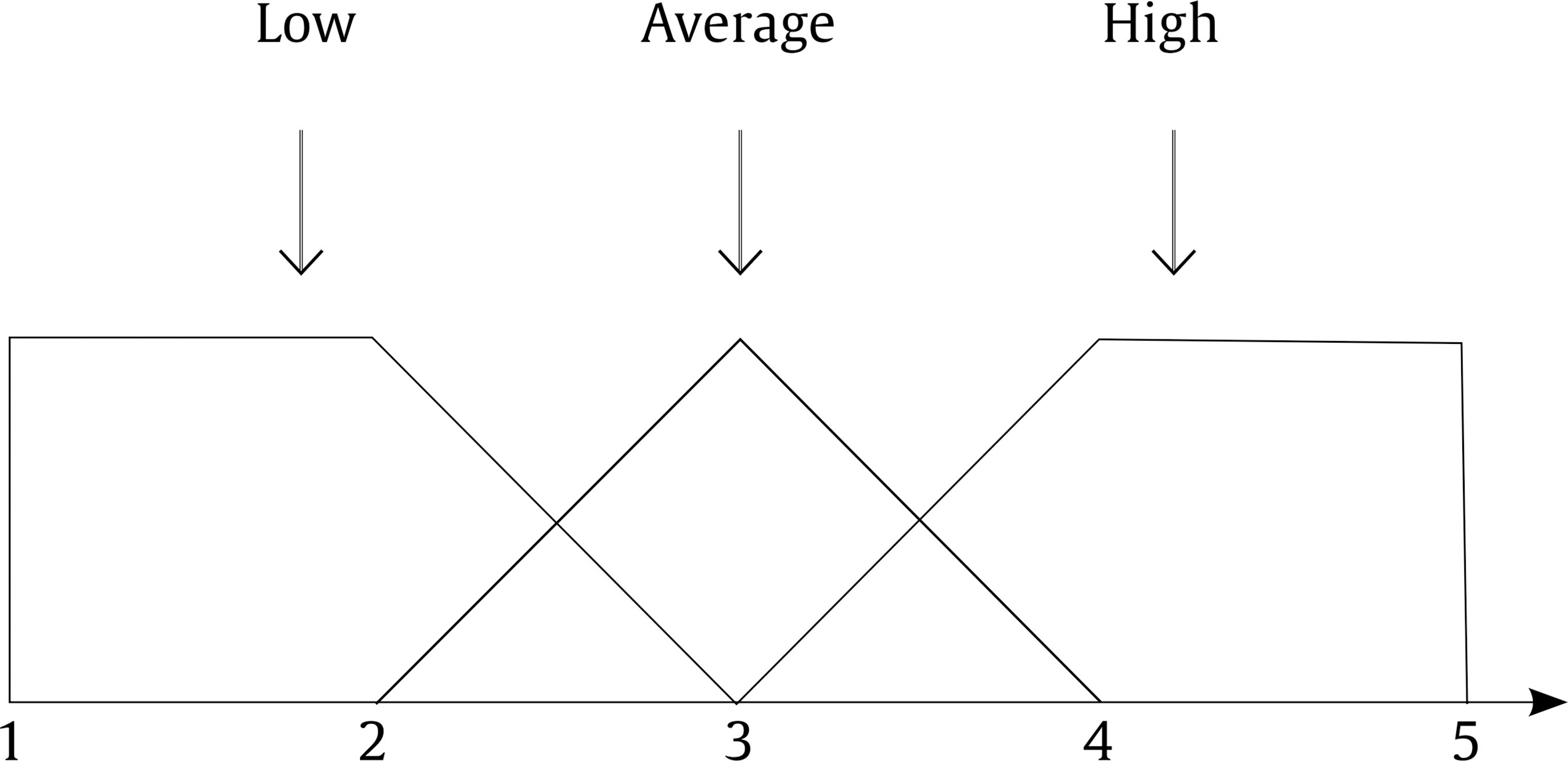 Zadeh (1972, 1973) considers that the key elements in the way human beings think are not numbers, but labels of fuzzy sets in which the transition from membership to non-membership is gradual rather than abrupt. He therefore created the linguistic variable concept, a variable that takes different values from natural language, which turned into computing with words (Zadeh, 1996), as a complement to numeric computation. For example, “validity” is a linguistic variable if its values are “low”, “average”, and “high”. These terms can be characterized as fuzzy sets, whose membership functions are shown in Figure 2 (e.g., Lee, 1990a, 1990b).