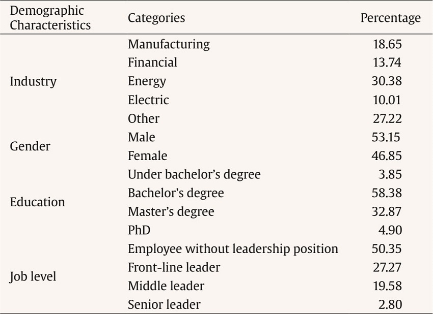 Employees working in various organizations (e.g., manufacturing industry, financial, energy, and electric industries) in China participated in the present study. Convenience sampling was used to recruit participants. In order to try to reduce common method variance, self-report data were collected at three time points with a time lag of four weeks between each wave via online. We contacted 30 human resource managers from different organizations and asked them to invite their colleagues to participate in the present study. We promised that all information relevant to participants would be treated as confidential strictly, and participants had the autonomy to stop participating in this study at any time. After received informed consent, we carried out our survey. No any incentives were provided to participants.