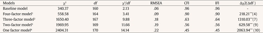 A confirmatory factor analysis (CFA) was adopted to examine discriminant validity between strengths-based leadership, job insecurity, strengths self-efficacy, employee strengths use, and core self-evaluation. To lower inflated measurement errors due to multiple items of the latent variable (Alhija & Wisenbaker, 2006), we constructed three random item parcels for core self-evaluation and two item parcels for strengths-based leadership according to its two dimensions, namely employee’s strengths-based leadership and leader’s own strengths-based leadership. Results of CFA demonstrated the five-factor measurement model regarding strengths-based leadership, job insecurity, strengths self-efficacy, employee strengths use, and core self-evaluation exhibits a better fit to the data compared to four alternative measurement models (see Table 2). Thus, these five research constructs have a good discriminant validity.