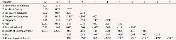 Keywords: Unemployment, Emotional intelligence, Resilience, Depressive symptoms, Happiness, Job search behaviors.