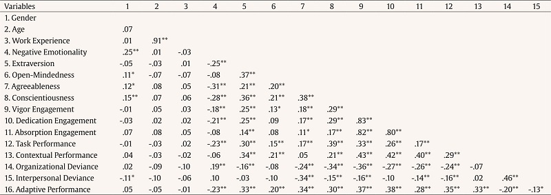 Keywords: Work engagement, Big Five, Task performance, Contextual performance, Counterproductive work behaviors, Adaptive performance.