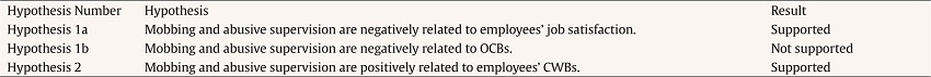 Hypothesis 1b: Mobbing and abusive supervision are negatively related to OCBs.