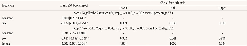 Descriptive statistics, Cronbach’s reliability index, Pearson and point-biserial correlations, hierarchical logistic regression analyses, and comparison of means via t-tests were applied using SPSS software (version 20). In addition, we used the chi-square test to compare differences in the proportion of men and women in the high and low rank. We also carried out bootstrapping analyses, as normality could not be assumed (Kolmogorov-Smirnov test using the Lilliefors correction: p < .05). G*Power software version 3.1.9.2, by Faul et al. (2009) was used to determine Pearson’s and the point-biserial minimum correlation coefficients, which is sensitive to effects to 90% power (α = .05, one-tailed).