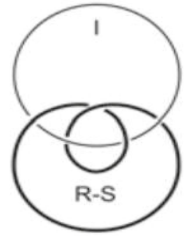 Propre de la psychose, la continuité borroméenne que présentifie ici Paul se spécifierait entre le symbolique et le réel, ce qui topologiquement se modéliserait autrement que par le nœud de trèfle. Nous retiendrons le schéma de Bousseyroux qui s’essaie à la dessiner de la manière suivante (Bousseyroux, 2004):