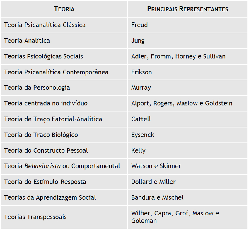 As teorias psicológicas podem fornecer elementos que contribuam para uma melhor compreensão da concepção humana que está tangenciando as decisões e escolhas realizadas pelos indivíduos em determinadas circunstâncias. Segundo Hall, Lindzey e Campbell (2000, p. 492), um fator-chave que diferencia as várias teorias em psicologia que se tem conhecimento, é a “[...] importância relativa dos determinantes inconscientes do comportamento como oposta à importância dos determinantes conscientes”. O Quadro 2 retrata as principais teorias psicológicas que podem respaldar as possíveis investigações referentes a essa temática.