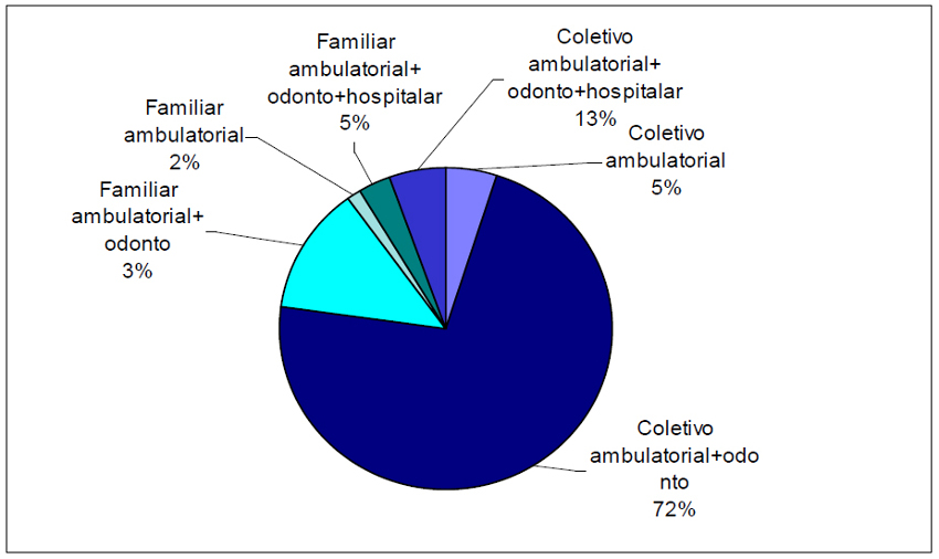 A maior concentração de beneficiários da operadora está nos planos coletivos com cobertura ambulatorial mais odontológica, correspondente a 72% do total de sua carteira. Os planos coletivos (planos firmados com pessoas jurídicas) representam 90% do total de beneficiários da operadora, conforme visualizado no Gráfico 1: