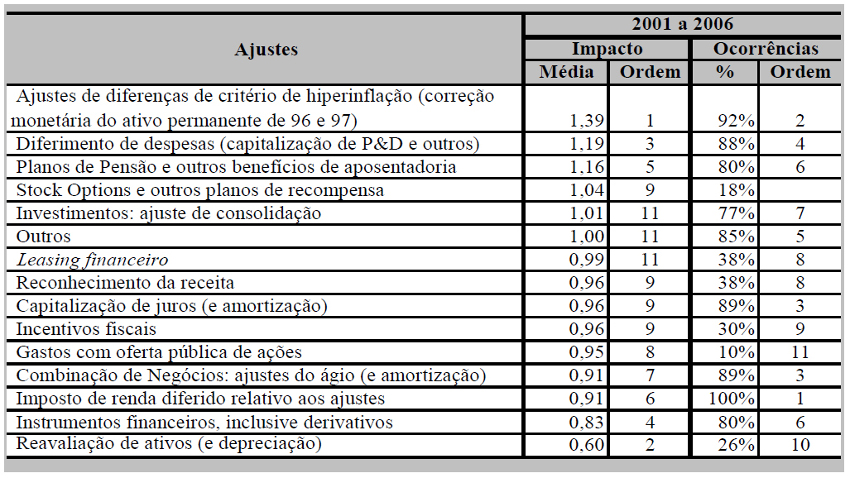 Uma vez que as normas brasileiras que originaram tais ajustes estão hoje (abril de 2008) em processo de regulação para adequação aos IFRS, a possibilidade de se estimar o impacto de cada ajuste entre os BRGAAP e os USGAAP no resultado das empresas poderá também contribuir para a identificação da sua relevância relativa na atual fase de transição para a harmonização no Brasil.