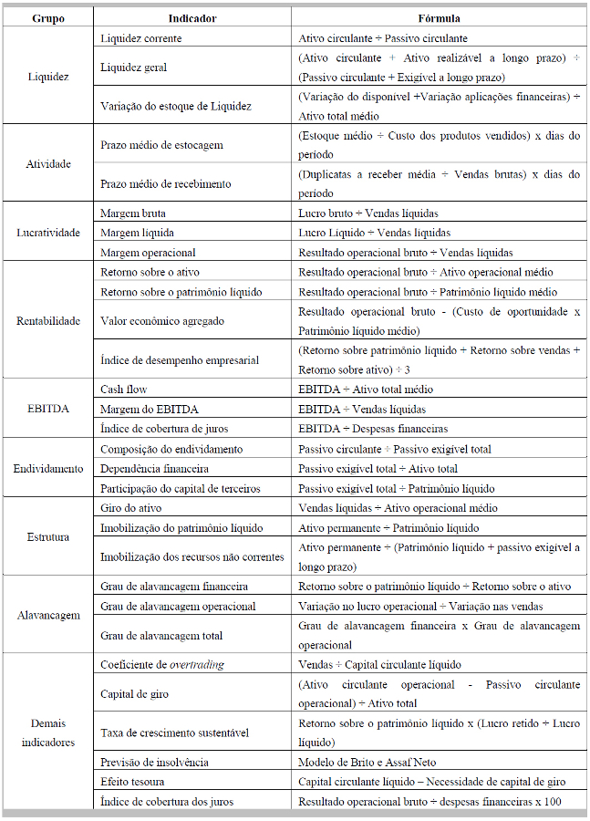 O conhecimento da origem e da razão das transformações da riqueza deve estar apoiado em um critério analítico e competente para produzir modelos de comportamentos de prosperidade (MOSIMANN & FISCH, 1999). Nesse sentido, uma das técnicas utilizadas pela contabilidade no estudo da evolução patrimonial das empresas é a análise das demonstrações contábeis, a qual se vale de indicadores do desempenho econômico-financeiro das empresas. Tais informações possibilitam estabelecer modelos de orientação para a tomada de decisão pelos diferentes usuários das informações contábeis, por meio da confecção de relatórios que contenham informações destinadas a atender o interesse específico de cada grupo.