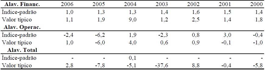 Por conseguinte, as empresas apresentaram redução no giro do ativo e estabilidade nos índices de imobilização. Evidencia-se, também, a estagnação das taxas de crescimento com recursos próprios e a ausência de alavancagem operacional. Em contrapartida às perdas na atividade operacional, as empresas recorreram a ganhos no mercado financeiro, os quais somados aos ganhos com equivalência patrimonial e outros resultados não operacionais, compensaram os prejuízos da atividade operacional, propiciando aumentos na margem líquida final.