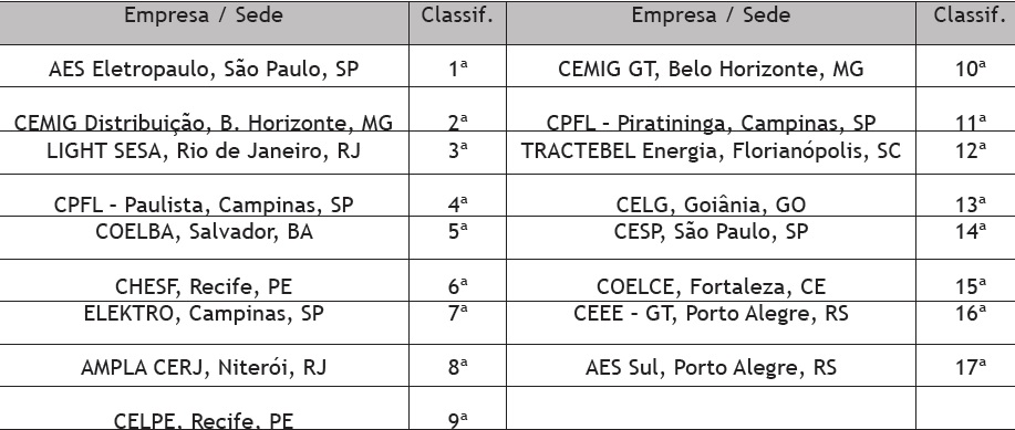 A população de análise refere-se ao grupo das 50 maiores empresas, por vendas, do setor de serviços, da revista Melhores e Maiores, edição 2007. Dentre as 50 empresas, 29 são do setor de energia elétrica, que constituem objeto desse estudo.Para compor a amostra foram escolhidas as 25 maiores empresas, na ordem decrescente do valor de vendas.Destas 25 empresas foram excluídas 2 empresas por serem holdings e outras 5 por não terem sido localizadas as suas demonstrações contábeis no site da CVM. Assim, a amostra final para análise, está composta por 17 companhias, conforme consta do Quadro 4. Este número é considerado suficientemente representativo para fins deste estudo, pois representa 58,6% das 29 maiores empresas do setor.