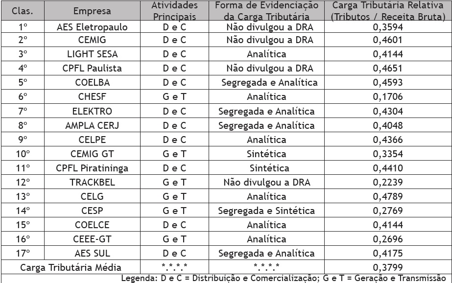 Key words: Tax Burden, Disclosure, Electric Energy Sector.